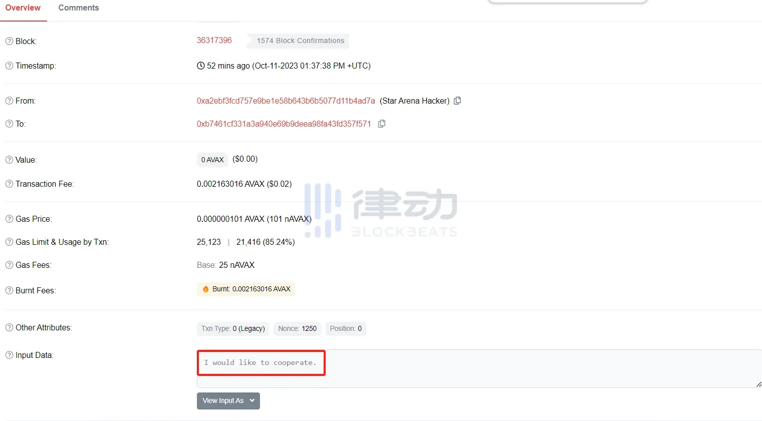 后于10 月 16 日,Stars Arena 在社交平台宣布已重新开放,但交易尚未恢复。Stars Arena 此前表示,只有在公布完整的审计报告并开源合约供社区审查后,交易才会恢复。而随后,这名引发安全事件的「个体」在链上留言称,「I would like to cooperate.」疑似希望与 Stars Arena 项目方取得合作,以商议处理被盗资金。此前 Stars Arena 团队曾向黑客留言称,「我们已经开始通知有关部门处理,如果你愿意合作,我们将提供赏金。」