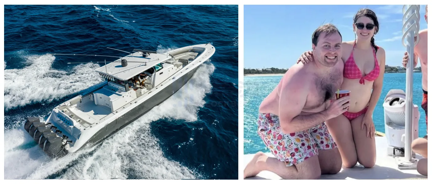 Sam Trabucco 在游艇上(右图),图源来自网络