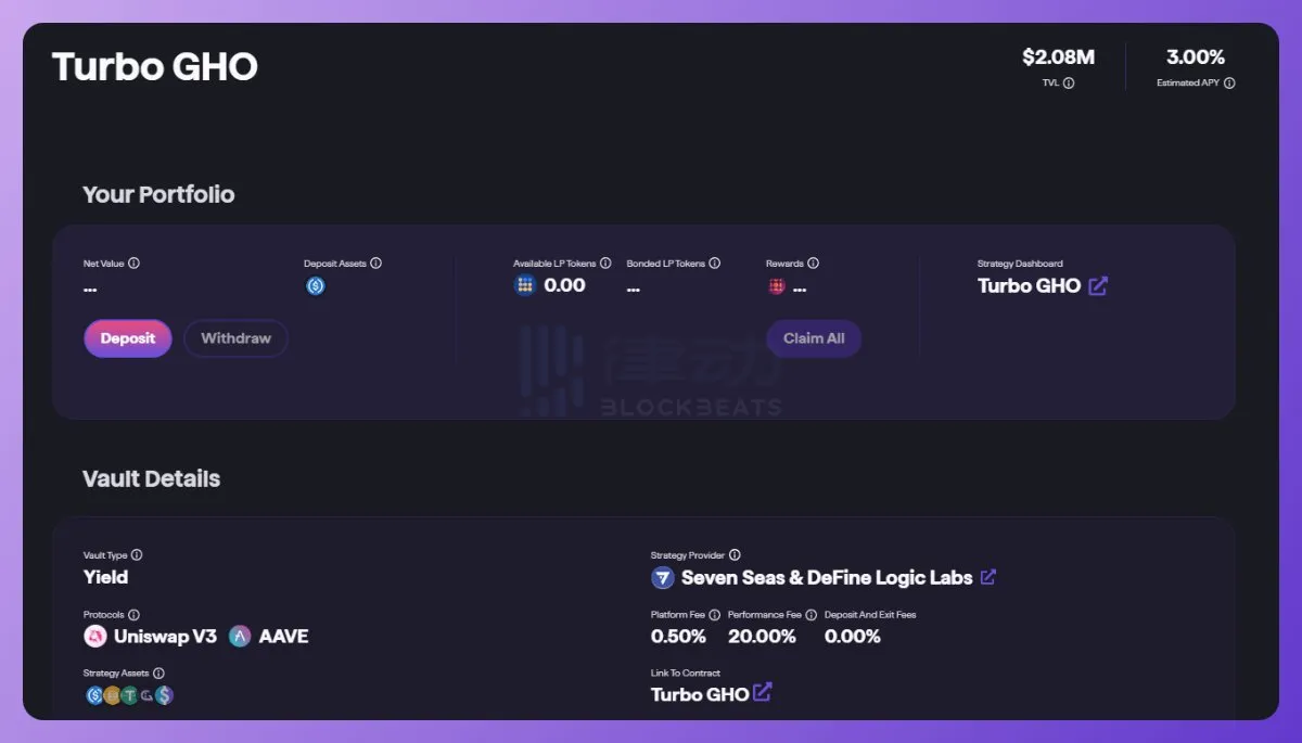 该质押池利用 Aave 的超额抵押稳定币 GHO。 该保险库的目标是: