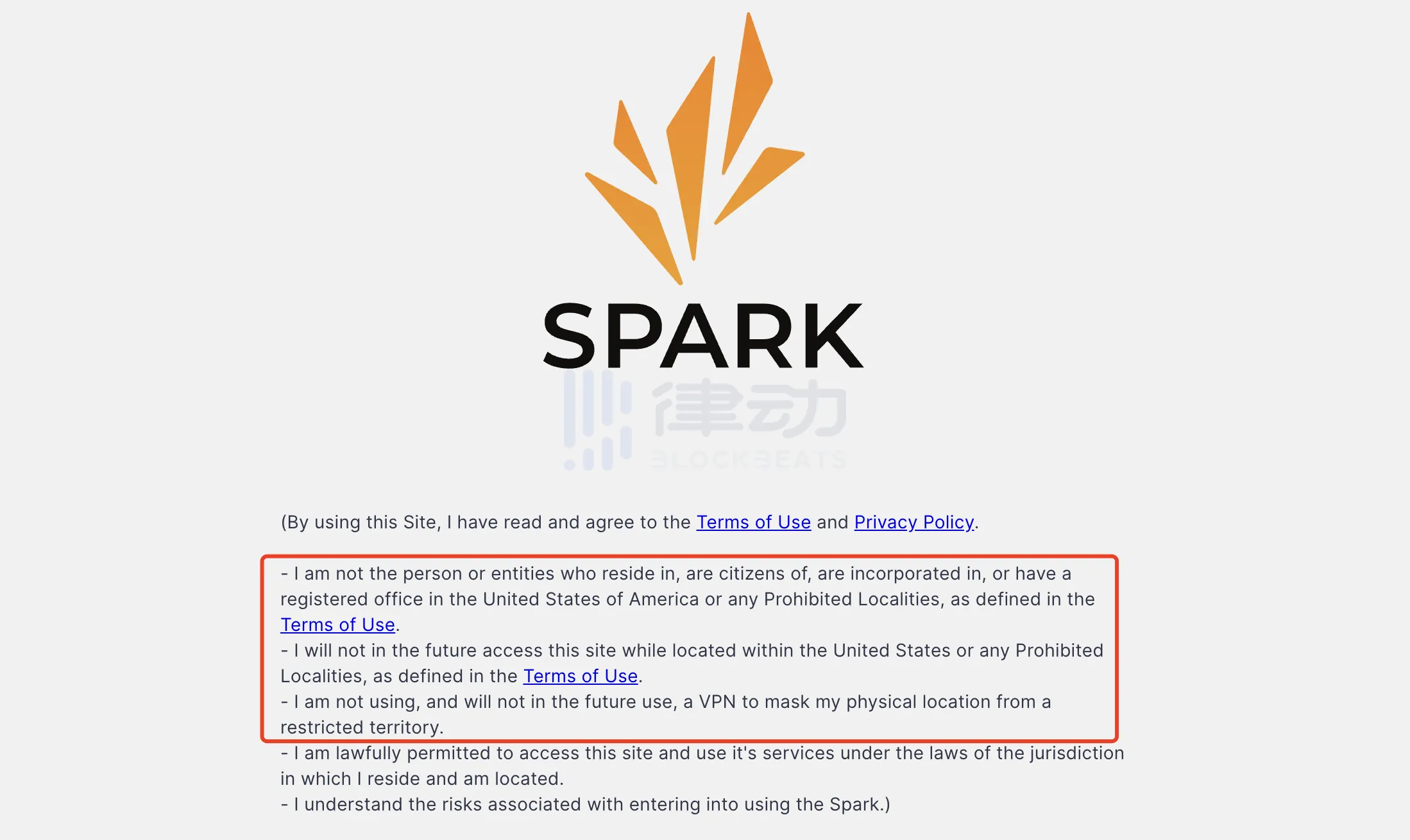 除了限制具体国家或地区的用户使用,还有可能连 VPN 使用也被禁止。5 月 9 日,去中心化稳定币协议 MakerDAO 宣布推出以 稳定币 DAI 为中心的 DeFi 借贷协议 Spark Protocol,但美国地区或 IP 地址不可用,其服务条款还禁止美国用户使用 VPN 来隐藏其美国居住地,其他非美国地区的用户使用 VPN 也被禁止。