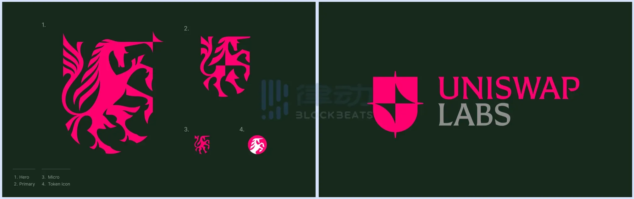 2021 年 Uniswap 更新 Logo,左为 Uniswap 协议 Logo,右为 Uniswap Labs Logo,图源来自 Uniswap.org