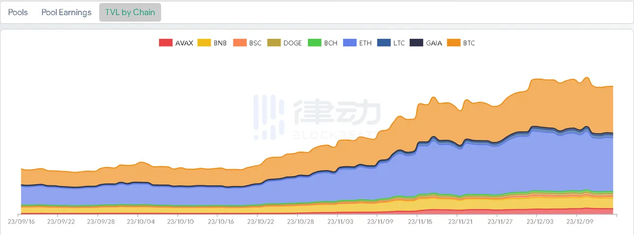 根据 THORChain 官方平台数据显示,THORChain 上锁仓的 BTC 价值从千万美元上升至 1.3 亿美元规模,BTC 交易量需求的增加促使该平台交易量节节攀高。