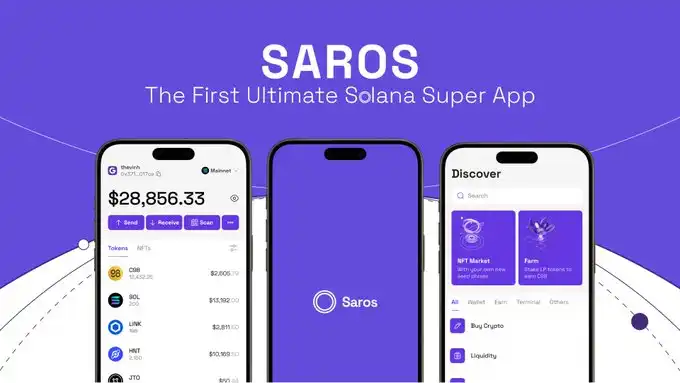 本轮融资公布的不久前,Saros Finance 刚有了新动作。2023 年 12 月 26 日,Saros Finance 宣布,为了实现创建互联 Solana 生态系统的愿景,Saros 将重点从 DeFi 产品扩展到消费者应用程序、支付、ID 和 DePIN,计划在 2024 年 Q1 推出 Saros Super App 和 $SAROS 代币,此外还将推出 Saros ID 功能。这些更新旨在赋权 Saros 社区,为用户提供一个完全集成的移动消费者应用程序和 Solana 生态系统内的一系列功能。