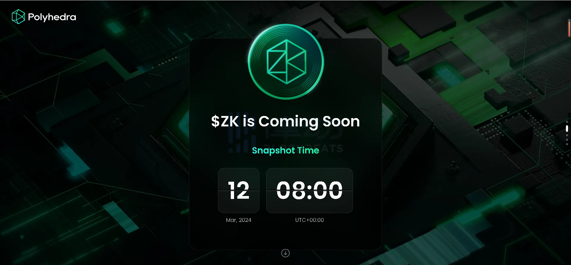 3 月 12 日,Polyhedra Network 官方在社交媒体平台宣布 ZK 上线 OKX Jumpstart,随后官网公告 16 时完成快照。