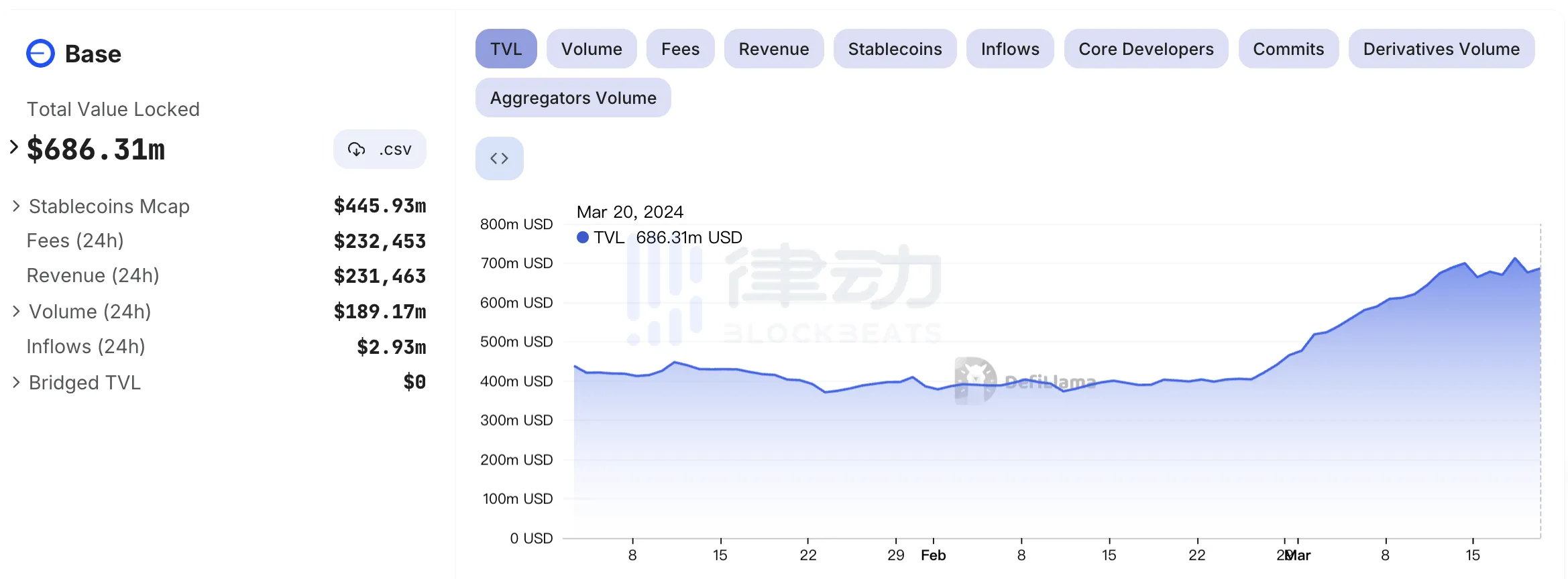 目前,Base 的 TVL 达到了 6.86 亿美元,三月以来上涨幅度相对于其它 Layer2 来说排在前列。截止本文撰稿时,社群里对于 Base 的 fomo 程度有所熄火,但这一波长达四小时的 Base 牛市让市场短暂的意识到,Base 链似乎正在变得不同。