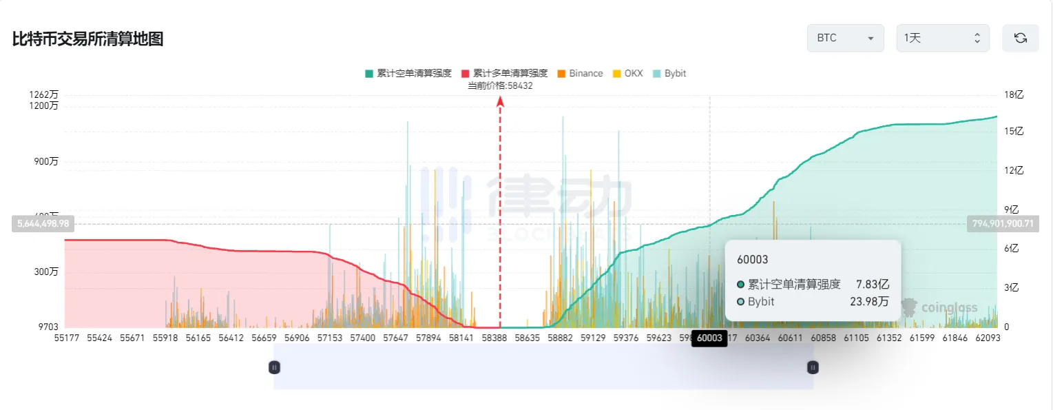 若比特币突破6万美元,主流CEX累计空单清算强度将达7.83亿
