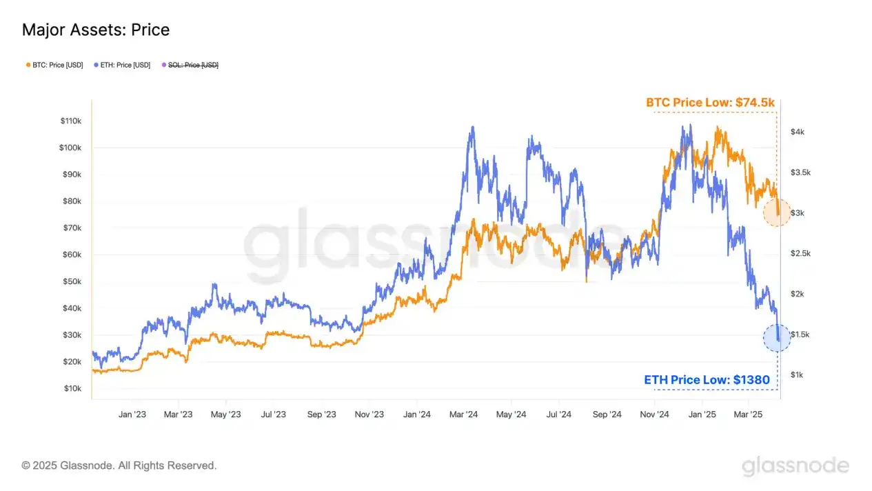 以太坊作为第二大加密资产,跌幅更为剧烈,价格从 1,800 美元降至 1,380 美元,市值减少约 400 亿美元。