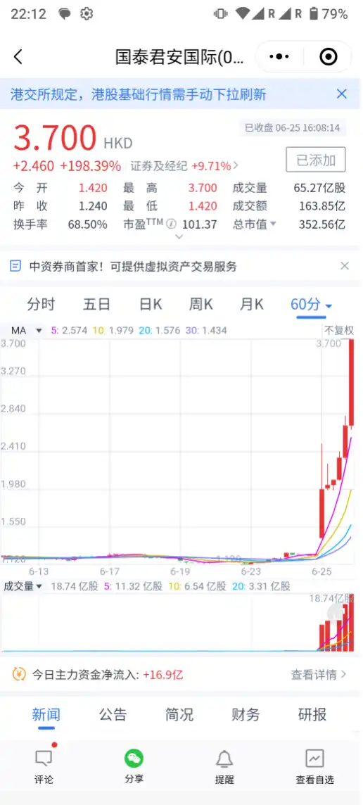 最近一段时间,部分券商获得 VA1、VA9 等 uplift 的数字资产牌照,引起港股资本市场大涨,尤其是驻港中资券商机构的下场,代表着国资机构的态度,涨幅更猛,拿牌就是题材。