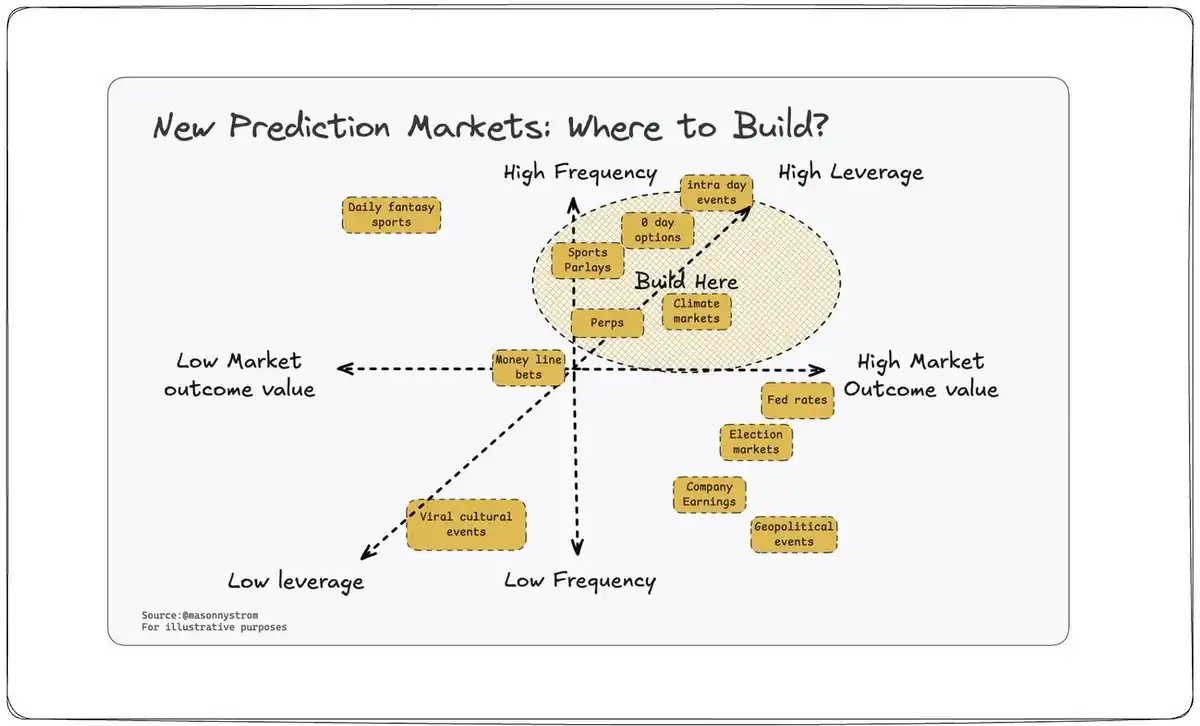 最后,我真心认为预测市场是引入新用户进入加密领域的绝佳途径,因为这些市场通常面向 CT(加密交易者)圈子之外的普通受众。几乎所有事物和话题都有对应市场,包括流行文化、明星八卦、新款苹果产品发布,以及你能想到的几乎任何事物。允许任何人对自己感兴趣的事物进行交易,这本身就是一种极具潜力的力量,也是我非常期待观察和参与的领域。