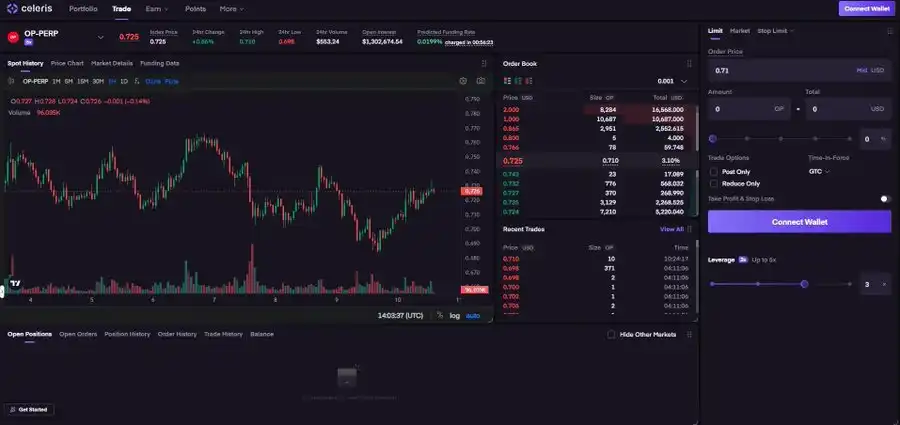 用户可以将 Monad 测试网代币存入 Celeris,在多个市场中交易永续合约,还可以尝试流动性提供和借贷功能。