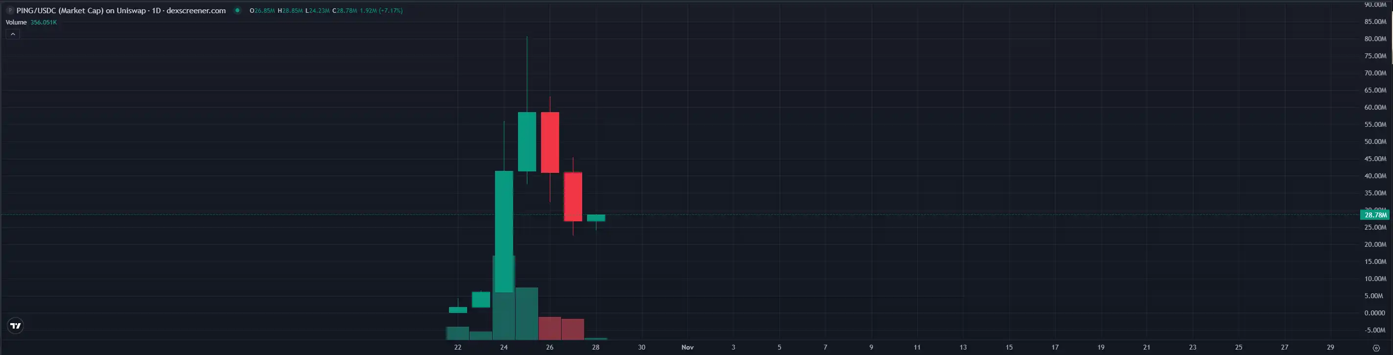 作为 x402 协议第一个诞生的 meme 币,$PING 在最 FOMO 的阶段一度被不少玩家与曾经 BRC-20 协议的第一个代币 $ORDI 进行对比。但 $PING 在一度突破 8000 万美元市值后没有能够继续突飞猛进,目前回调到了约 2900 万美元市值。