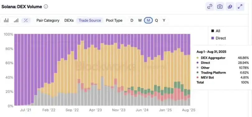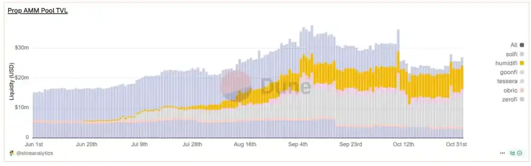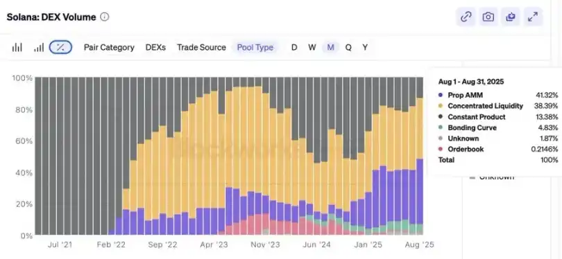 HumidiFi 是一个专业 AMM 协议,占据全部 DEX 交易量 50% 以上。
