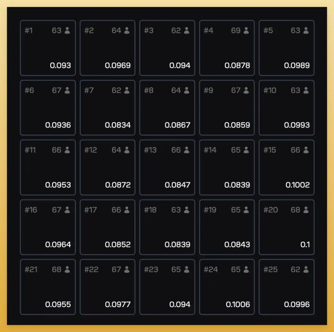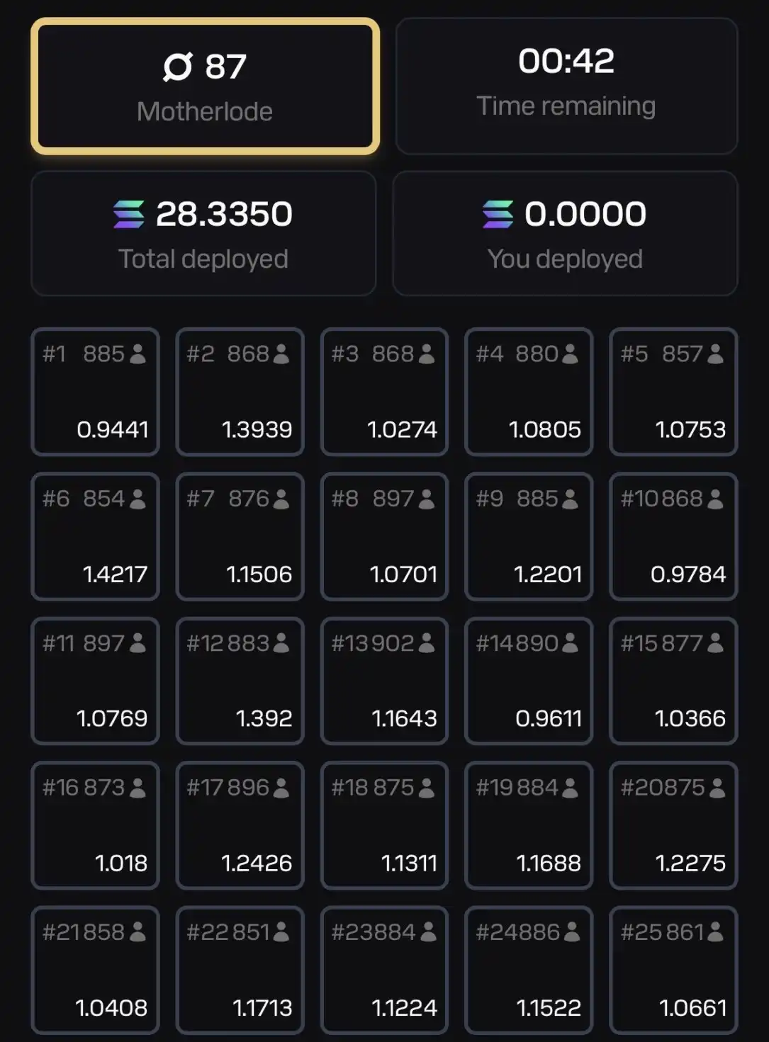 新协议引入了一个 5×5 的网格挖矿系统。每轮持续一分钟,矿工通过部署 SOL 来占据网格中的区块。每轮结束时,系统通过安全的随机数生成器选择一个获胜区块,该区块上的矿工按比例分享其他 24 个区块的全部 SOL。此外,获胜区块中的一名矿工还有机会获得额外的 1 枚 ORE 奖励(约每三轮一次)。这种设计将「零和博弈」转化为「集体价值再分配」,输家的 SOL 全额流入赢家,避免价值外流。