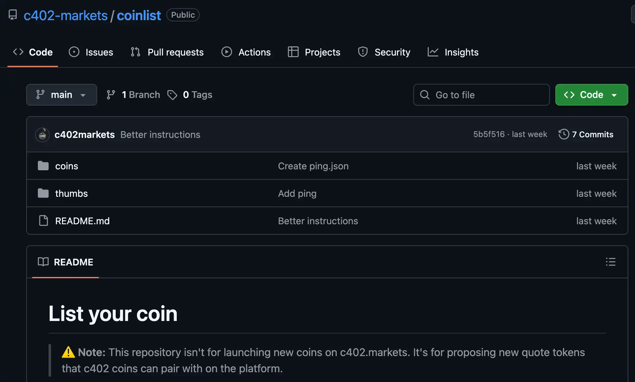 虽然初期只支持 PING 作为配对资产,但 c402.market 的 GitHub 仓库已经开放了"配对代币白名单"的提交机制 github。任何项目都可以提交 PR,申请将自己的代币加入配对选项,但前提是必须在 Uniswap v3 或 v4 上有足够的 (锁定) 流动性,且 JSON 格式和图片规格符合要求;通过审核后,还需要在链上手动白名单化。