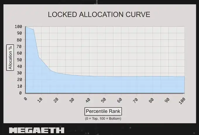 @cp0xdotcom 在 Twitter 上几乎没有存在感,也从未发过关于 MegaETH 的推文,因此社交评分很低。但他仍然在所有参与者中排名前 20,并获得了其锁仓出价的 92%。