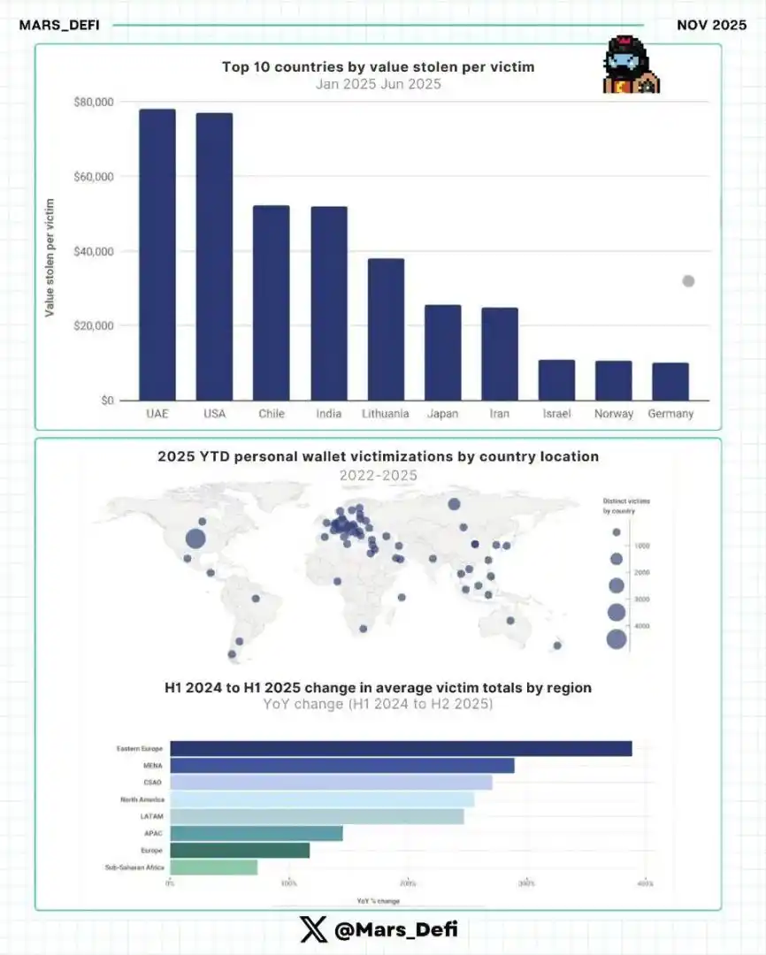 · 单受害者被盗金额最高的国家并非非洲或印度国家