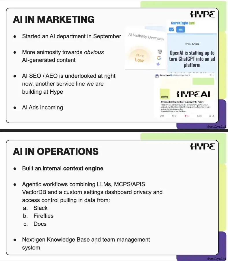 这是我在营销领域看到的 AI 趋势,以及我们在 Hype 构建内部运营「上下文引擎」的经验。