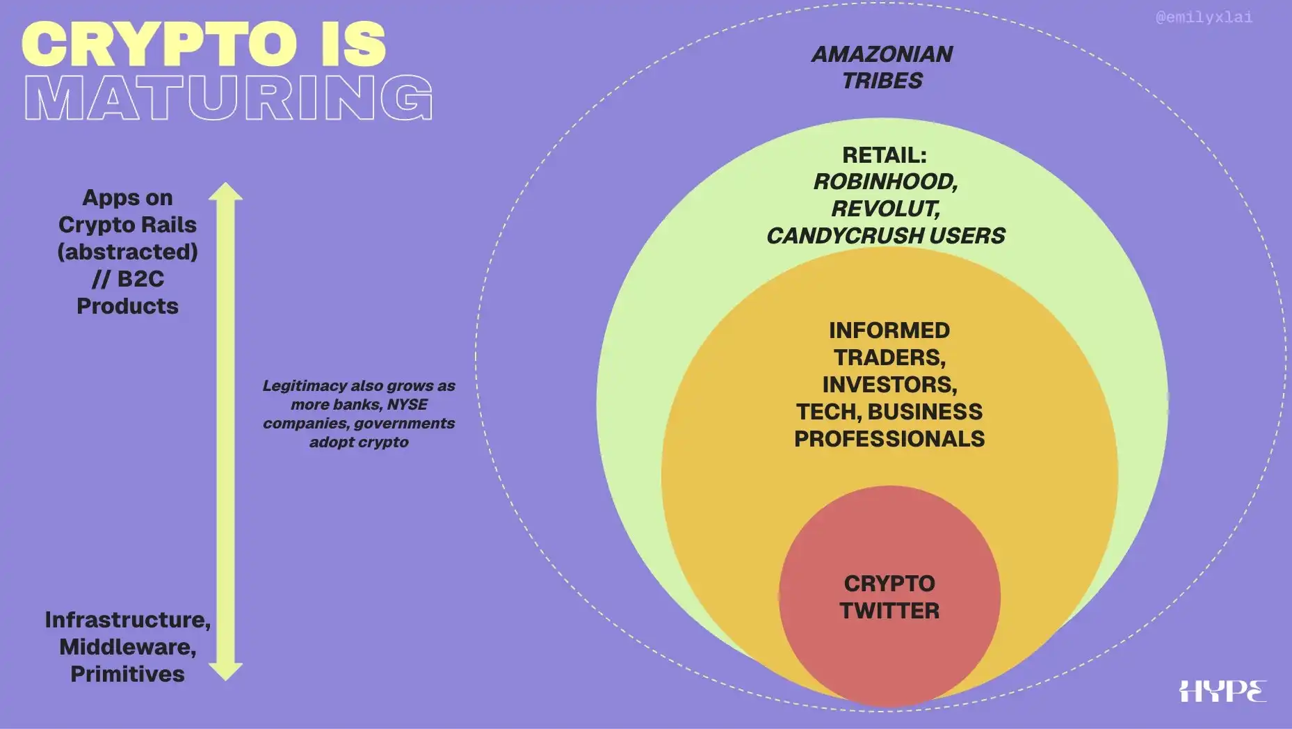 随着基础设施、底层协议和中间件逐步完善,行业重心正从链和生态转向应用。当传统金融机构开始部署资金,且拥有数百万用户的金融科技应用接入区块链轨道,这不仅为整个行业带来合法性,更重要的是让我们触达 CT 之外的新用户。
