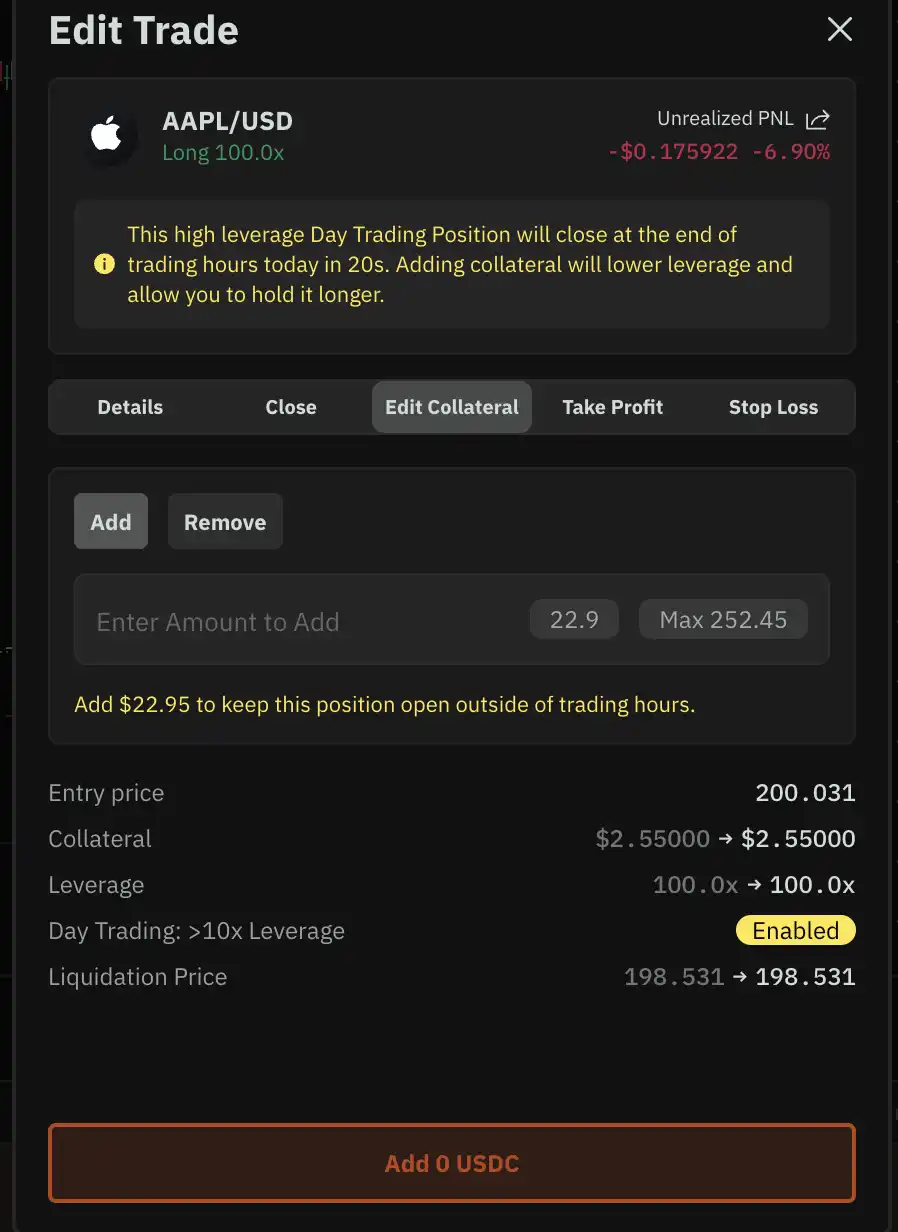 另外,虽然 Ostium 的杠杆倍数比较激进,能开到最高 100 倍杠杆。但这也只限于日内交易。一旦超过当日窗口或进入隔夜,杠杆要求就会被严格收紧。