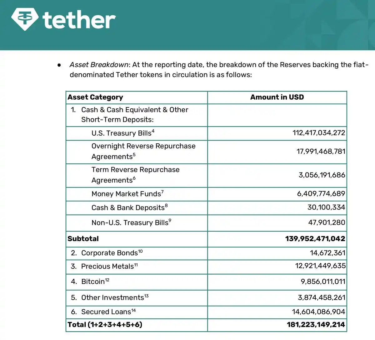 · 二是除了储备资产外,Tether 本身还持有巨额的自有资产,这些资产足以作为 USDT 的储备缓冲池,以维系该运钞机生意的运作。