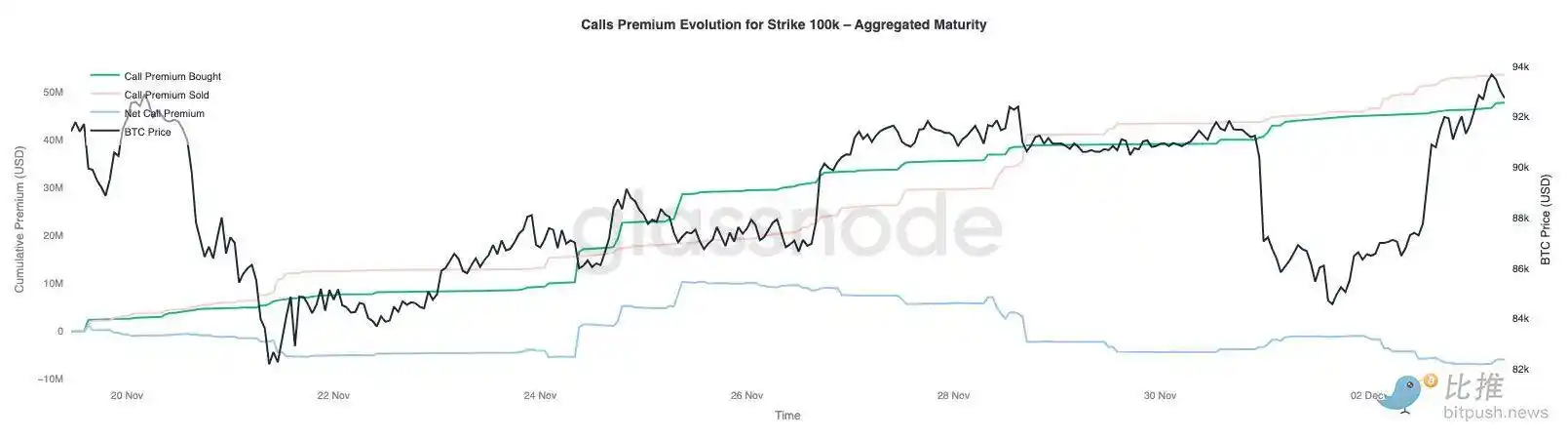 溢价概况还显示,交易者并没有在 FOMC 会议之前建立激进突破的头寸。相反,资金流反映了一种更谨慎的立场,上行被卖出而非被追逐。因此,最近的复苏缺乏挑战 10 万美元这一重要水平通常所需的信念。