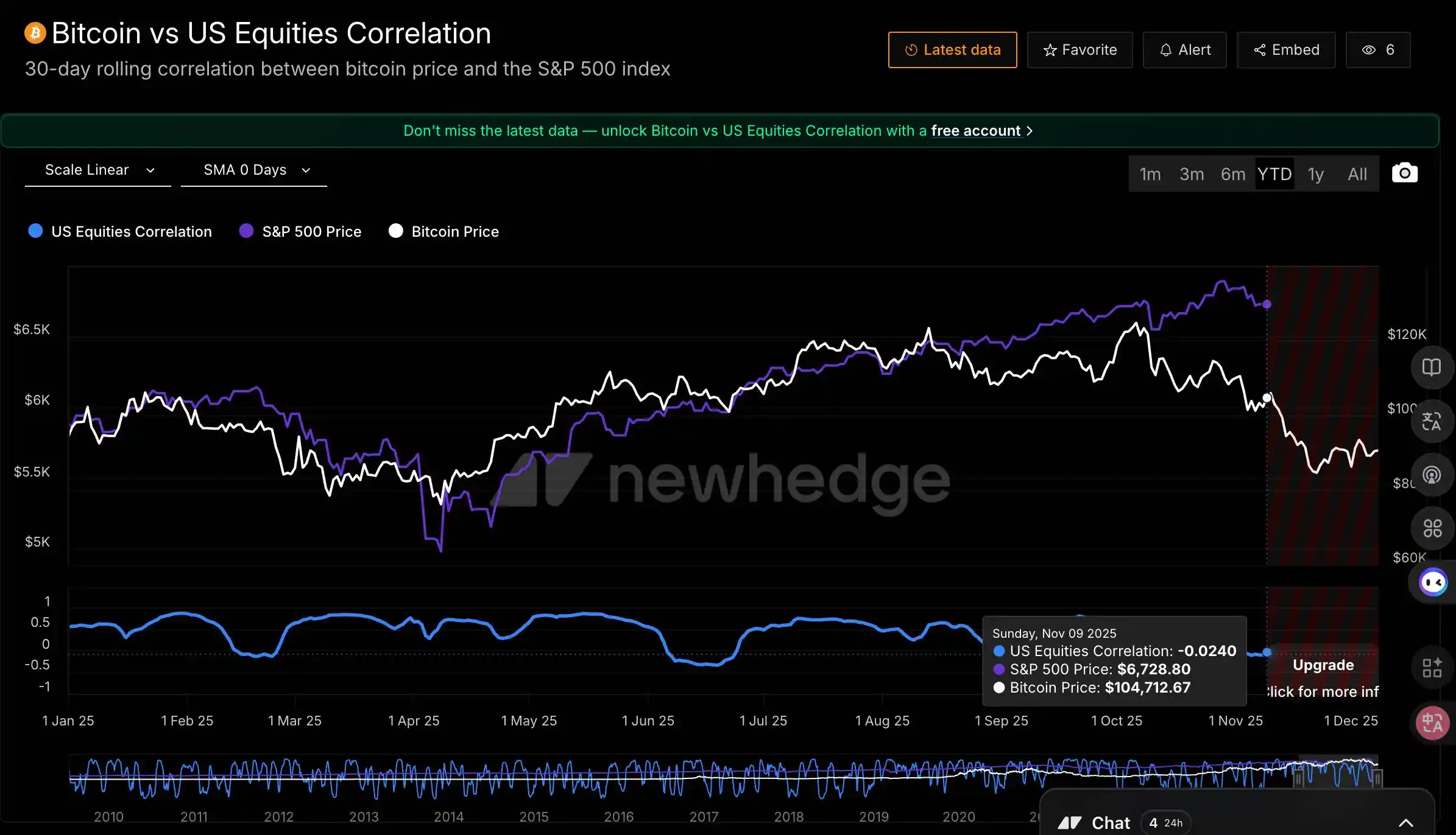 纳斯达克距离历史高点只有 2%,BTC 却从 10 月高点下跌了 27%。