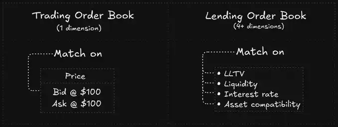这在交易领域很有效,因为交易相对简单:买卖双方在某个价格相遇即可。但借贷要复杂得多。一笔贷款包含多个维度: