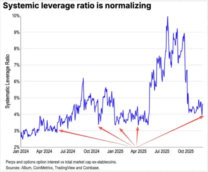 在 1011 下跌中 ETH 的期货杠杆盘被充分清理,最后已经杀到现货的杠杆盘,同时很多对 ETH 信仰不足,导致这很多远古 OG 纷纷减仓逃跑。根据 Coinbase 数据,币圈的投机杠杆已经降到历史低位区域 4%。