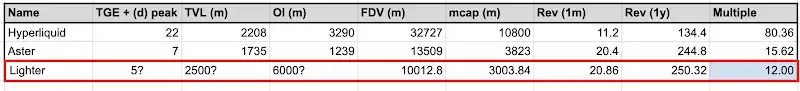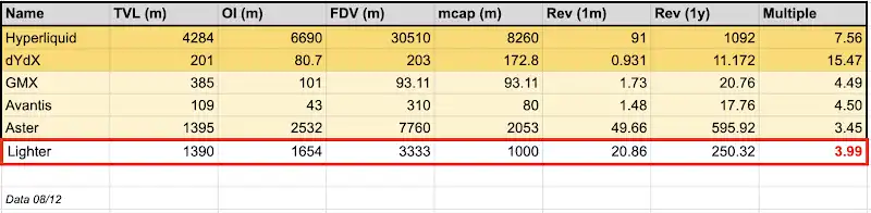 与其他Perp Dex相比,Lighter 的估值被低估了。