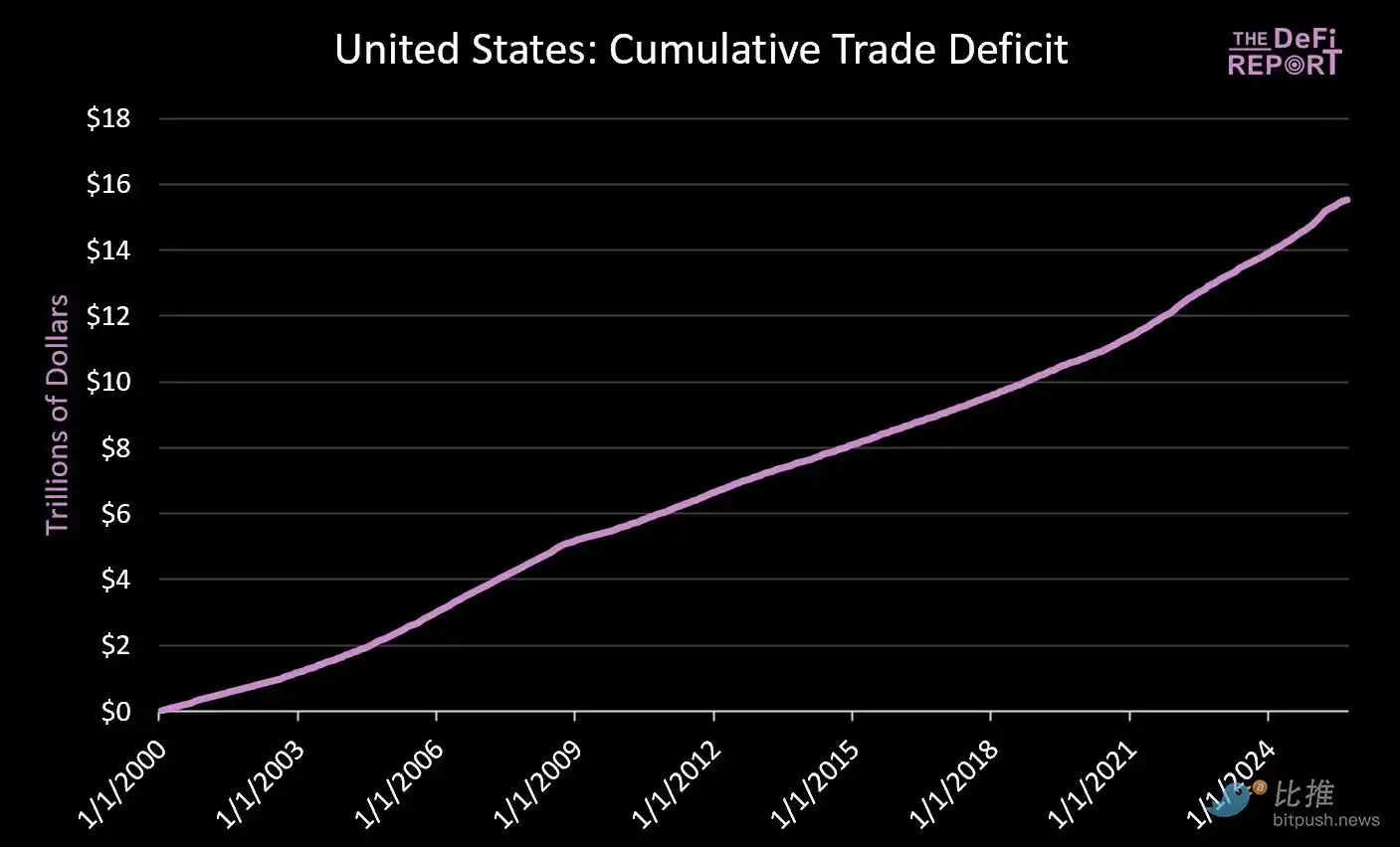 · 与此同时,为了支付商品,约有 16 万亿美元流向海外。