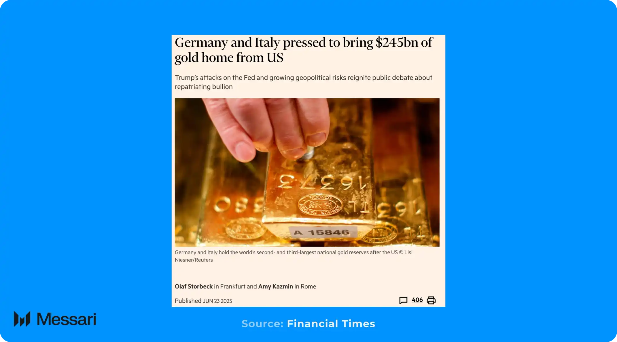 Cryptomoney 还从根本上改变了个人保管财富的方式。在法币体系中,真正意义上的自我托管早已变得不切实际,大多数人不得不依赖银行或其他金融中介来存放储蓄。即便是黄金这类传统的非主权资产,最终也往往被集中存放在托管金库中,重新引入同样基于信任的风险。