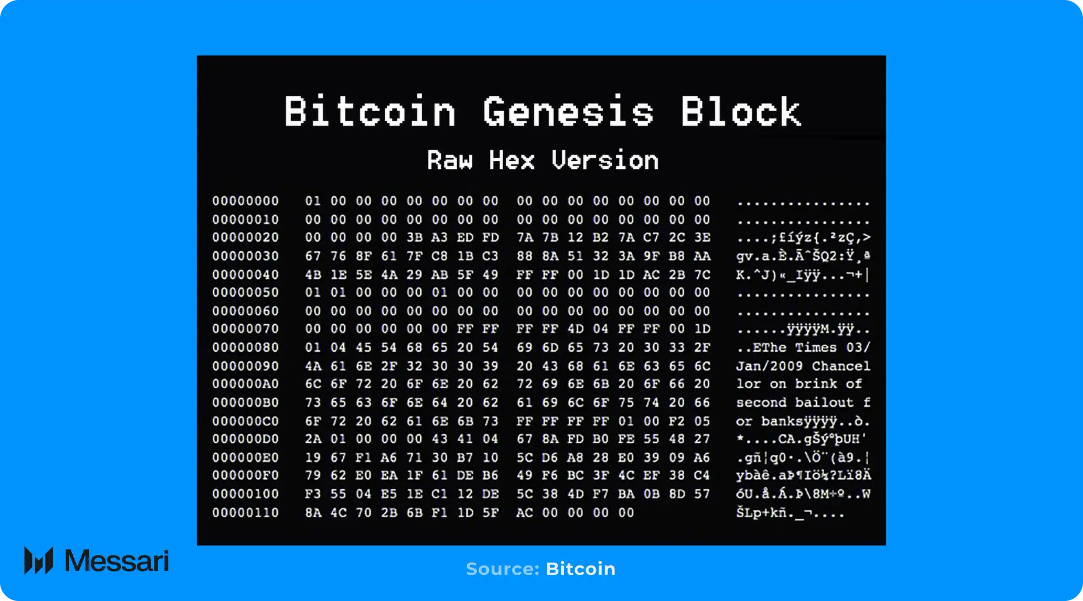 自比特币创世区块诞生以来,这一理想就已深深嵌入行业的 DNA 之中。那个区块中,刻意镌刻了一行后来广为流传的信息:「The Times 03/Jan/2009 Chancellor on brink of second bailout for banks.」(《泰晤士报》2009 年 1 月 3 日:财政大臣正站在对银行实施第二轮救助的边缘。)
