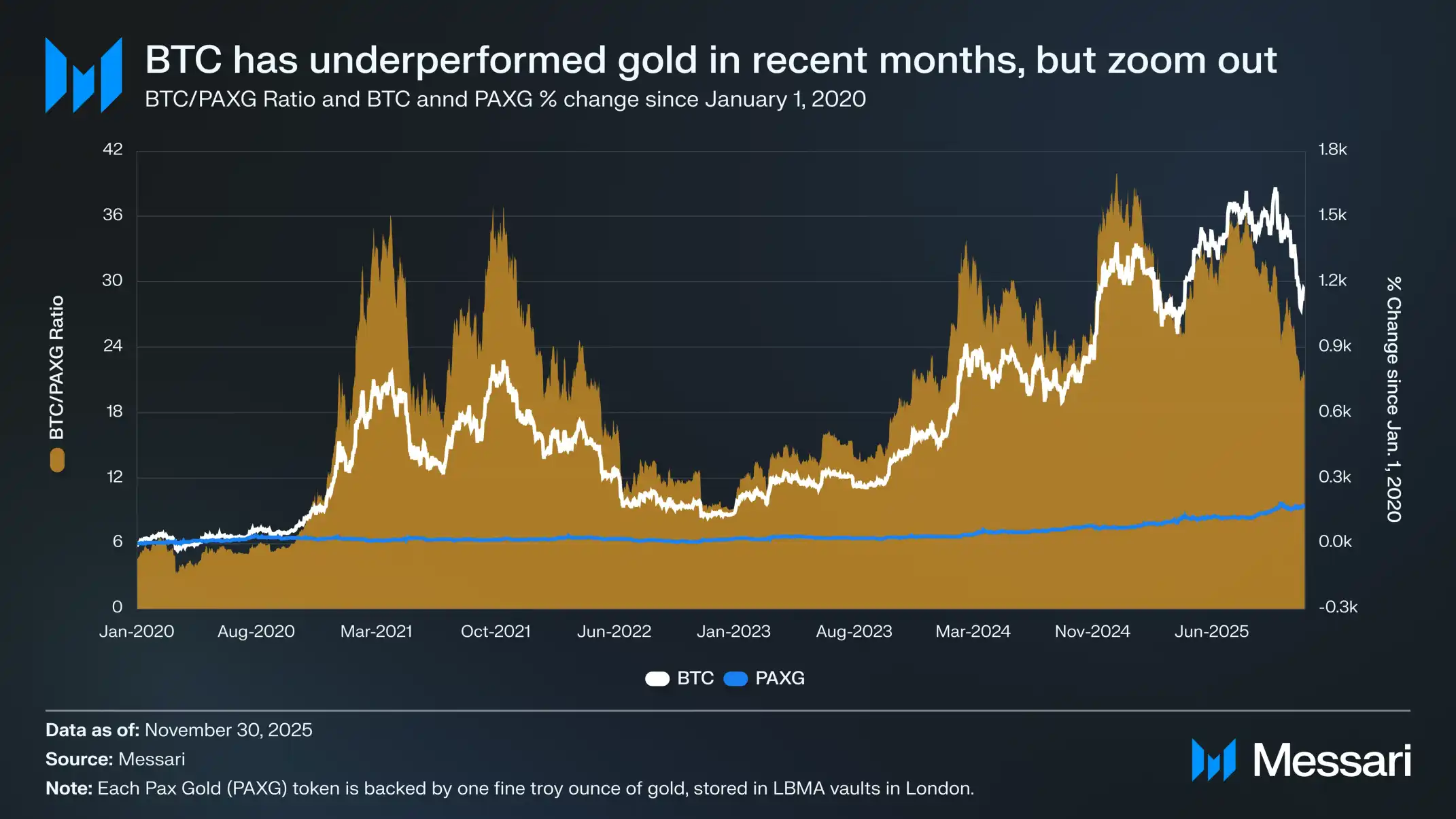 如果在黄金表现最强劲的周期之一中,BTC 未能与之同步上涨,那么其「数字黄金」的地位究竟有多稳固?