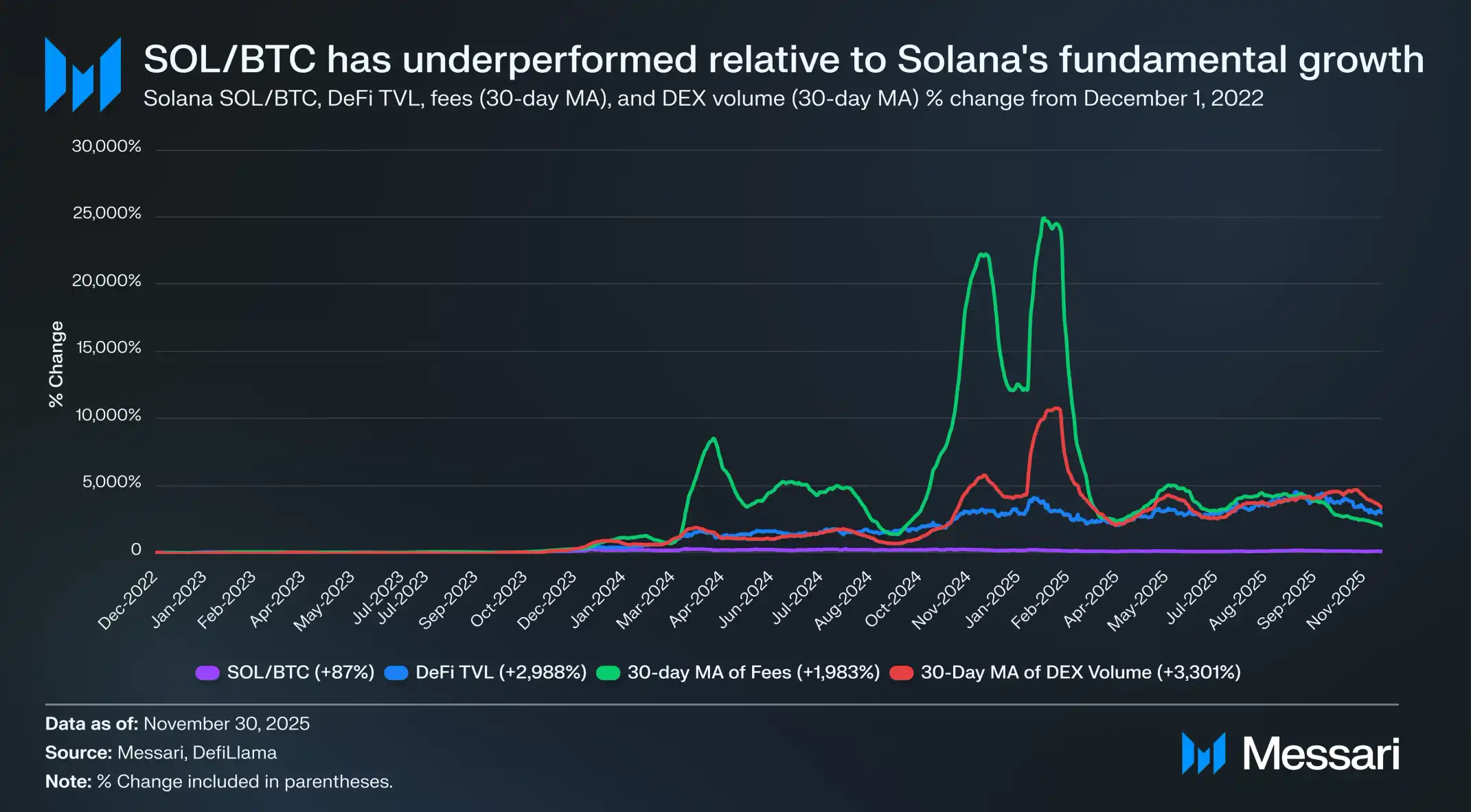 尽管 ETH 的反转极具力量,这轮行情最终仍趋于降温。到 11 月 30 日,ETH 从 8 月高点回落至 2,991 美元,不仅明显低于本轮高点,也低于上一轮周期的历史高点 4,878 美元。与 4 月相比,ETH 的整体处境已显著改善,但这次反弹并未消除最初引发看空逻辑的结构性担忧。如果说有什么变化,那就是围绕 ETH 的争论反而变得比以往任何时候都更为激烈。