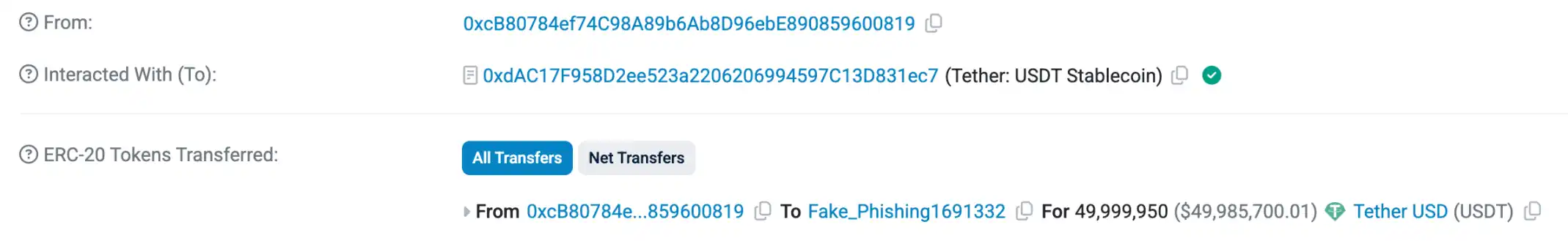 北京时间昨日凌晨,X 名为 Specter 的链上分析师发现了一起因为没有仔细检查转账地址而导致近 5000 万枚 USDT 被转入黑客地址的案件。