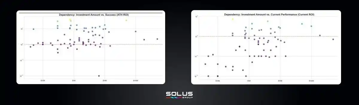资金最少的项目(30 万美元至 500 万美元)每筹集一美元的投资回报率更高,它们执行速度更快,转向成本更低,而且不会淹没在季度风险投资方代币解锁表中,大量解锁的代币会破坏项目收益。