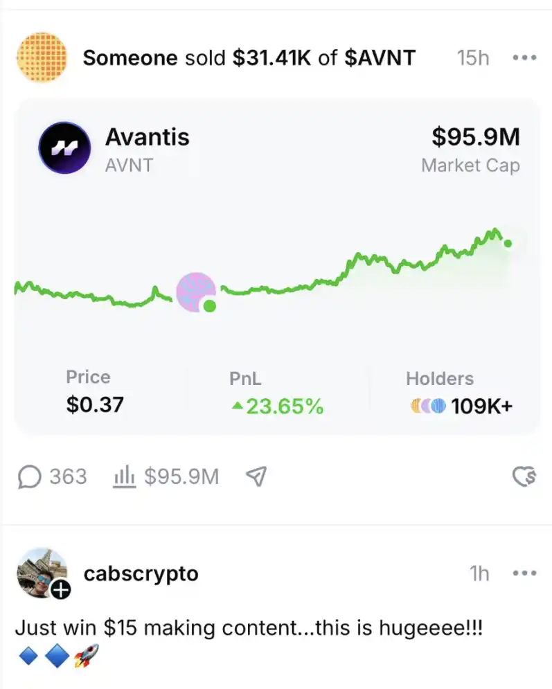 平台还会突出展示大额交易或多人集中买入的行为,便于用户跟单。此外,还有一个便捷的「隐藏操作」——双击感兴趣的帖子或创作者币,即可按预设额度快速买入。