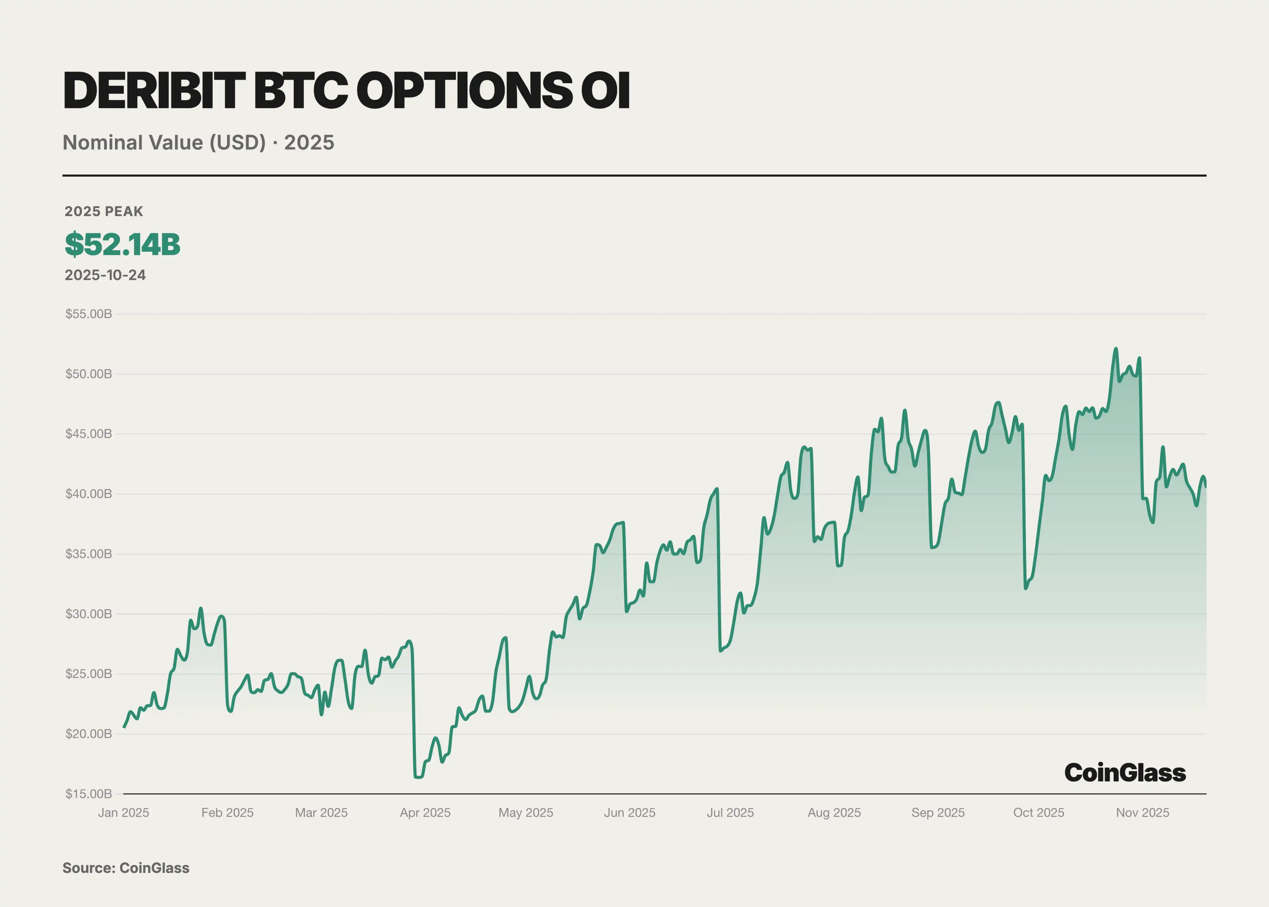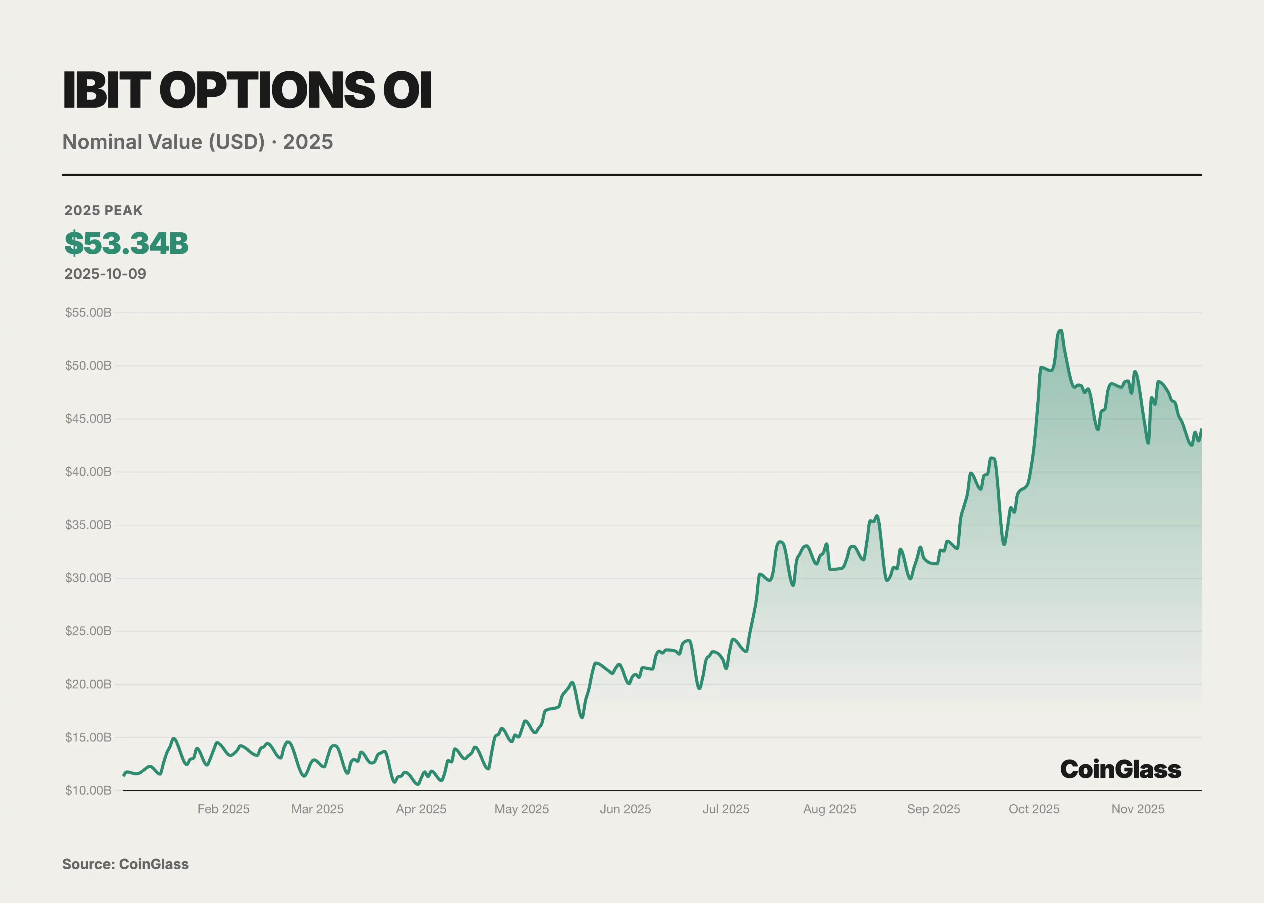这一年中,传统金融机构的介入成为期权市场变化的分水岭。随着美国监管环境的演变,多家华尔街机构推出了 BTC ETF 及其期权产品。尤其引人注目的是贝莱德推出的 IBIT 于 2024 年 11 月开始提供期权交易,在 2025 年迅速崛起为 BTC 期权市场的新巨头。总体来看,2025 年的市场格局呈现双轨特征:一方面是以 Deribit 等为代表的 crypto-native 平台,另一方面是以 IBIT 等 ETF 期权为代表的传统金融渠道。