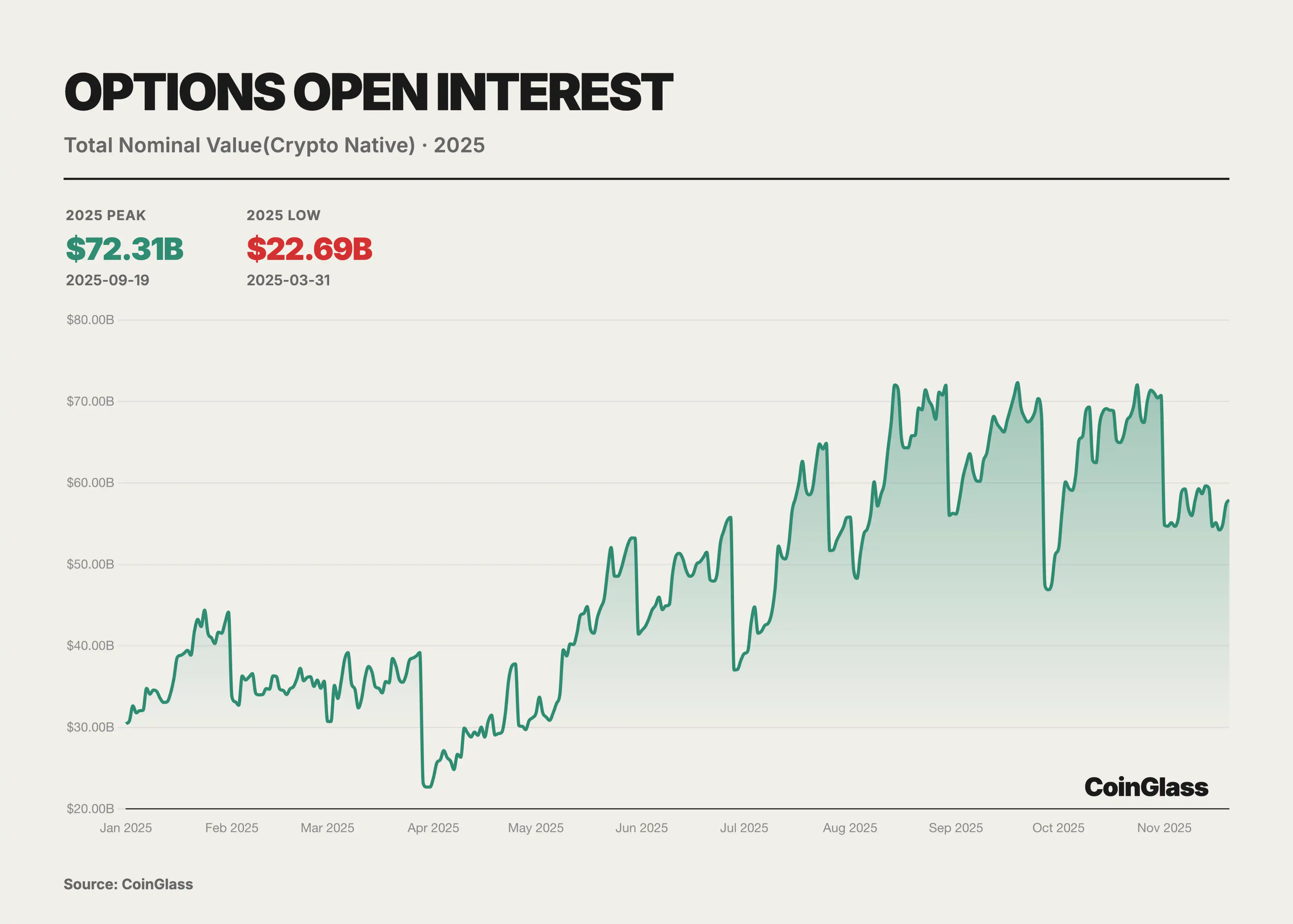 2025 年 11 月,CME 加密货币板块的日均交易量达到了历史性的 424000 张合约,名义价值 132 亿美元,同比增长 78%。这一数据超越了 2024 年的任何单月表现,且接近 2021 年牛市巅峰时期的水平,但其构成更为健康,更多是由机构对冲和套利驱动,而非单纯的散户投机。