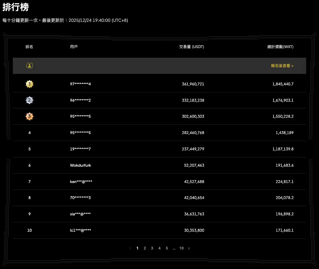 作为一项用户回馈活动,「合约挖矿」旨在与用户共享平台增长红利。活动期间,用户每进行一笔合约交易,均可实时获得以平台币 WXT 发放的手续返还。该活动自推出以来受到用户热烈支持,平台交易量屡创新高。据 WEEX 官网数据显示,截至 12 月 24 日 18:00 (UTC+8),仅「合约挖矿」排行榜前 100 名用户的交易额就已超过 21.8 亿 USDT、挖矿奖励超过 1,125 万 WXT。