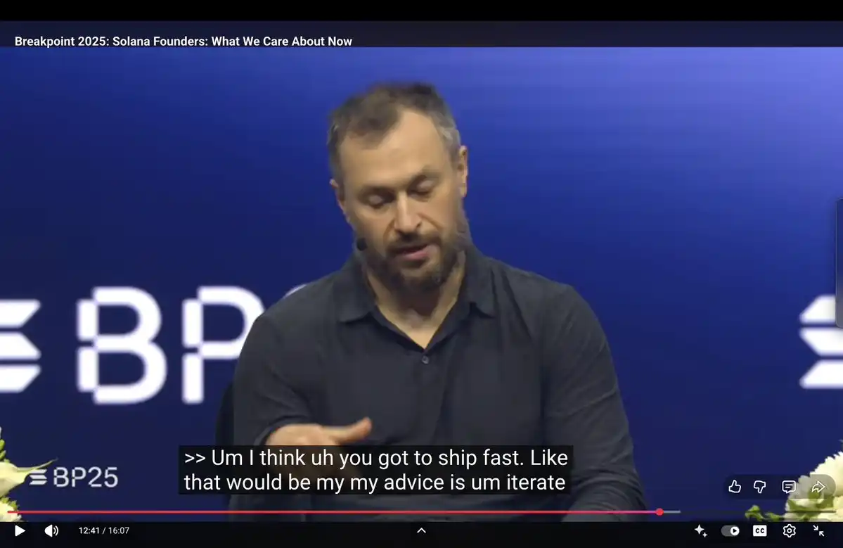 这是 toly 在 Breakpoint 2025 上给开发者的建议。