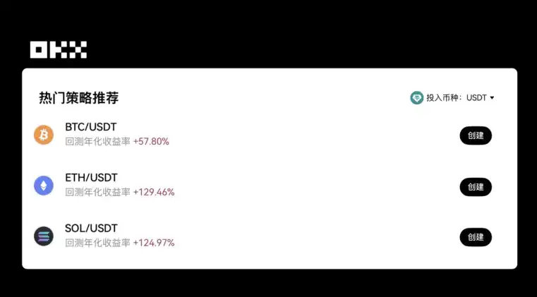 在 OKX 策略产品中,部分策略表现出了出乎意料的特点。首先,定投和币本位合约网格虽然看似小众,但在实际运行中收益稳健,能够在震荡行情或底部建仓阶段持续累积盈利,风险相对可控,适合多数用户长期布局。其次,DCA、双币赢策略用户基数不大,但人均收益显著高于平均水平。这类策略通过智能双向布局和风险对冲,在行情波动中既能捕捉上涨趋势,也能在下跌中保留收益空间,因此被少数深度用户用于稳健套利。