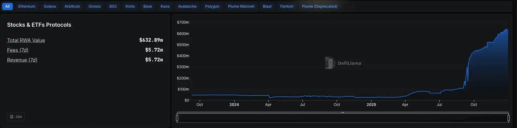 平台已扩展到 Ethereum、BNB Chain,并计划 2026 年初上线 Solana,支持超过 1000 种资产。TVL 快速增长,2025 年底超过数亿美元,成为代币化股票领域最大平台之一。