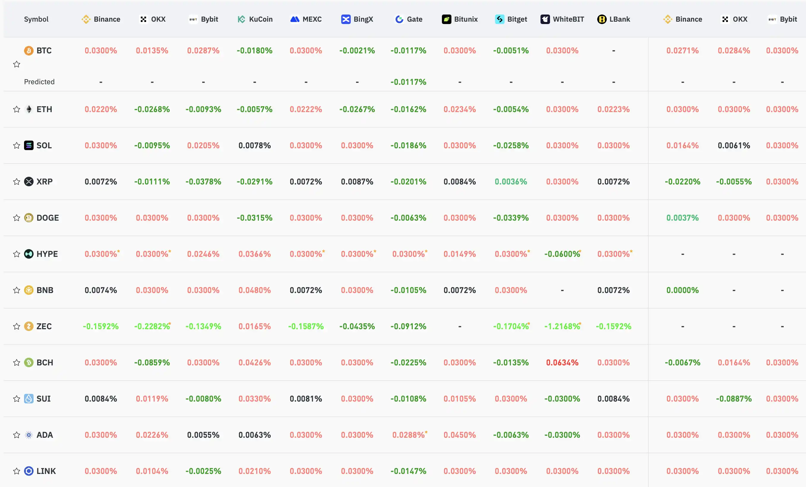 每日市场整体资金热度(根据资金费率反映)与代币解锁