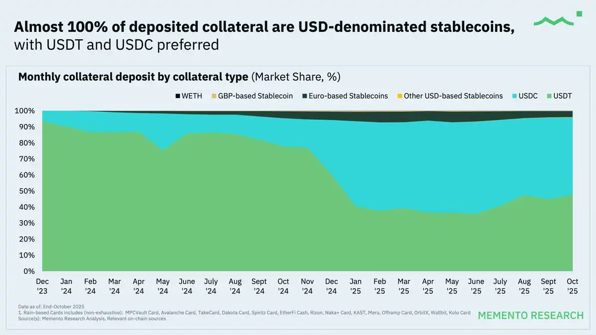 · 存款主导消费:稳定币在存款行为中占据主导地位,占据了几乎所有的抵押资产份额,进一步强化了类似借记卡的低波动性消费模式。