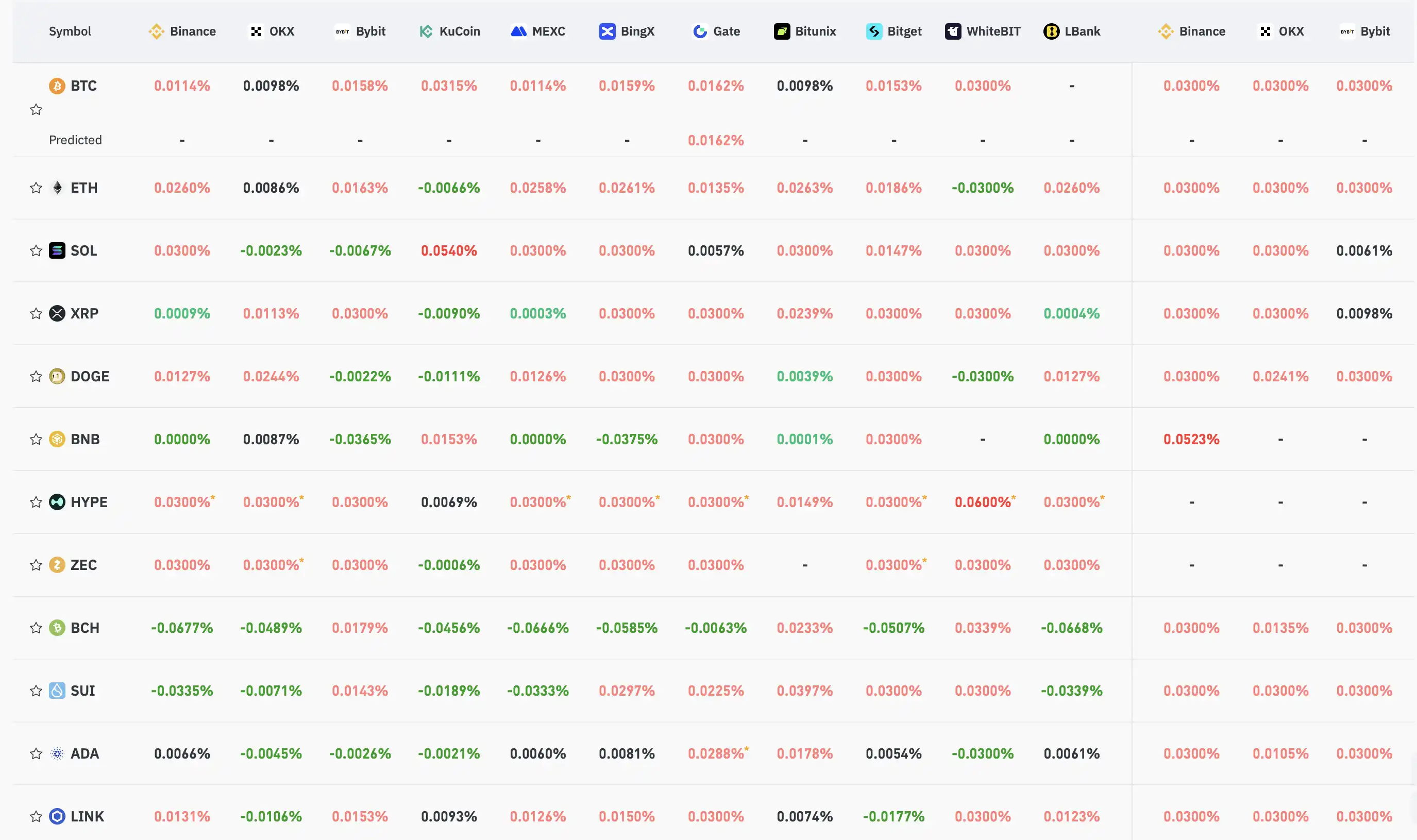 每日市场整体资金热度(根据资金费率反映)与代币解锁