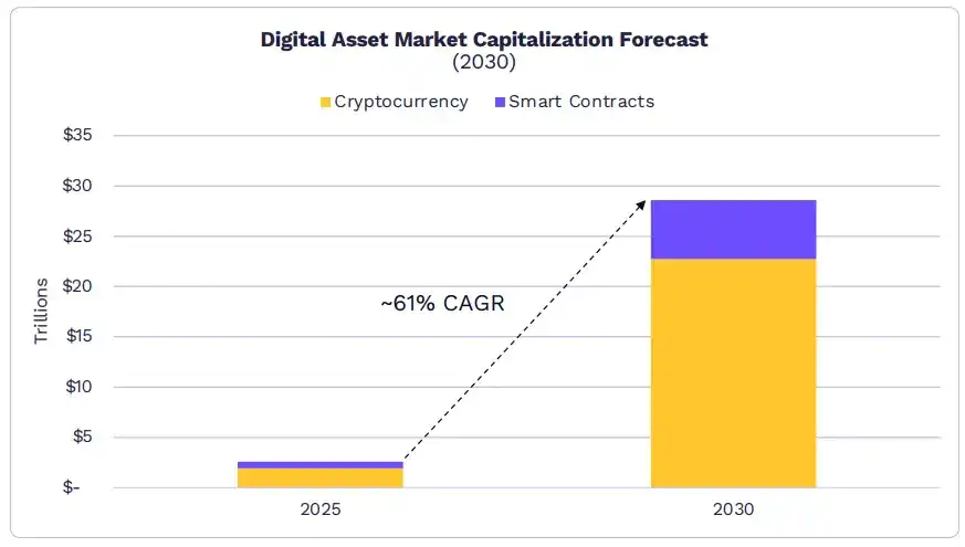 数字资产市值到 2030 年可能达到 28 万亿美元。