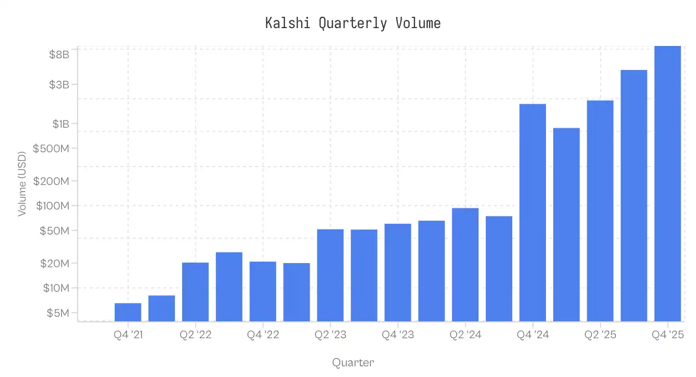 转折点与两个事件重合:Kalshi 在 2024 年 10 月战胜 CFTC 获得政治合约许可,以及随后的 2024 年选举周期。交易量从 2024 年 Q3 的 3000 万美元激增至 Q4 的 8.2 亿美元。新资金吸引了成熟的做市商,随之而来的是从吃单流中提取价值。