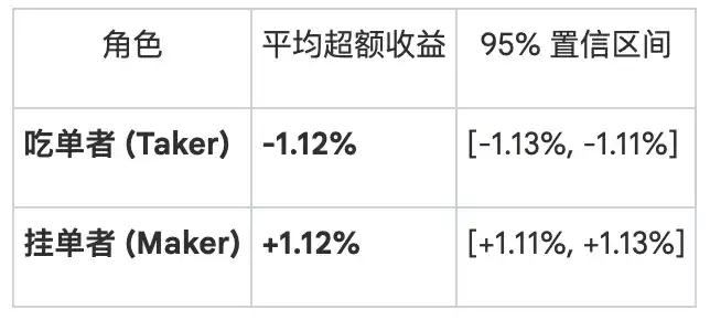 市场的总体错配集中在特定人群:吃单者承担损失,挂单者获取收益。