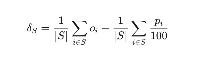 错价 (δS) 衡量的是一组交易 S 的实际胜率与隐含概率之间的偏离度。